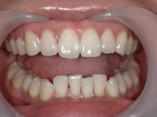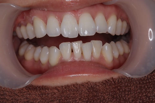 上顎はスムーズに明るくなるも、下顎のシェードアップ乏しい。